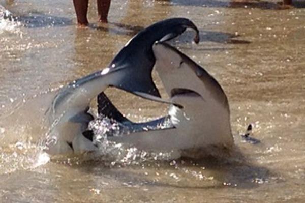 وتابعت قائلة: 'فما كان من الرجل إلا وسارع للبحر وأمسك بتلابيب سمكة القرش التي بلغ طولها مترين، وصارعها حتى تمكن من جرها إلى أعماق المياه، قبل أن يعود مرة أخرى للشاطئ'.