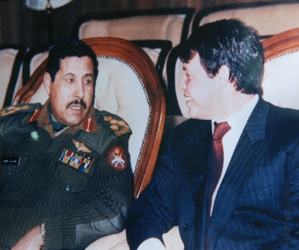 أذكر بأن جلالة الملك عبد الله الثاني كان برتبة ملازم ثاني بعد أن تخرج من كلية ساندهيرست العسكرية في بريطانيا وقد حضر جلالته عندي ومعه زميله الملازم أنور العياصرة (الآن يحمل رتبة عميد) وكلاهما من خريجي ساندهيرست...وقبل مجيئهم استدعاني إلى القيادة العامة المرحوم المشير الركن زيد بن شاكر وأعطاني توجيهاته كيف أتعامل مع سمو الأمير عبد الله (الملك فيما بعد) وقد طلب مني بأن أعامله كأي ضابط يحمل نفس الرتبة (دون تمييز)...وفيما يتعلق بالإجازات التي سوف تمنح لسمو الأمير عبد الله كانت التعليمات التي تلقيتها بأن تبدأ إجازته من يوم الأربعاء حتى صباح السبت...وغير ذلك وحسب التعليمات بأن لا يعطى الأمير إجازات...وفعلا قمت بتنفيذ هذه التعليمات.